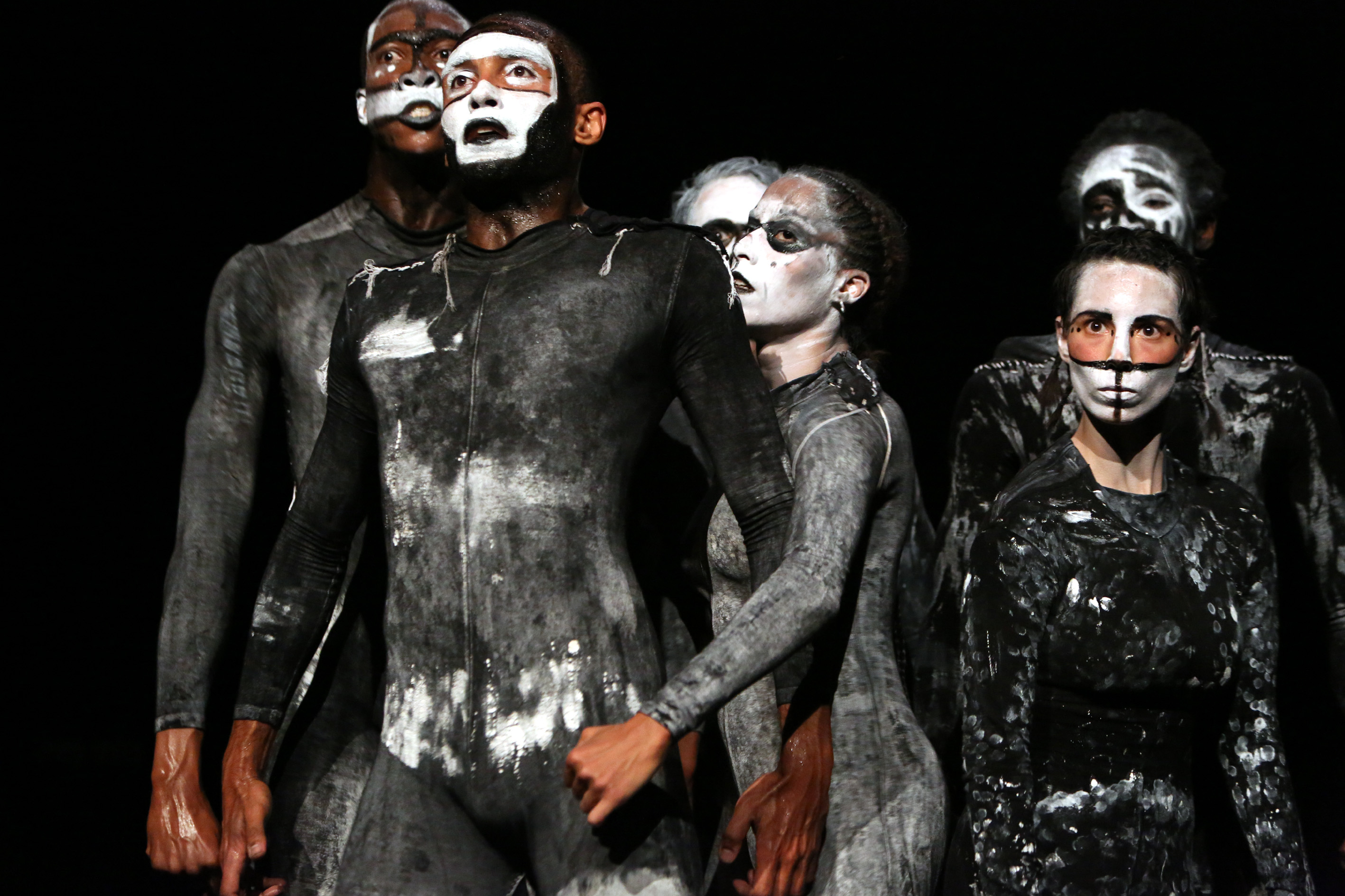MONUMENT 0: Haunted by wars (1913 – 2013), the first part of a series reflecting on the relationship between choreography and history. The choreographer and performer Eszter Salamon looks at the past 100 years as a history of wars, and together with six dancers brings to stage the tribal and folk dances, as well as other popular dance forms originated from the conflict zones of four continents. Embracing the approach of an archaeological history, this “dance macabre” brings about an impressively sombre yet stirring scenario bringing to light a different world and dance history.